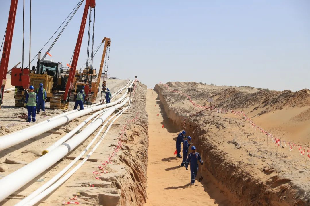 In the scorching desert atmosphere, the entire project line closely cooperated, achieving seamless connection in pipe laying, assembly, welding and other links. The daily construction of a single unit for trench excavation and pipe laying exceeded 600 meters. The automatic welding units No. 2 and No. 3 were not lagging behind, respectively achieving 24 and 20 welds in a single day, pressing the "accelerator" for the project construction with practical actions.